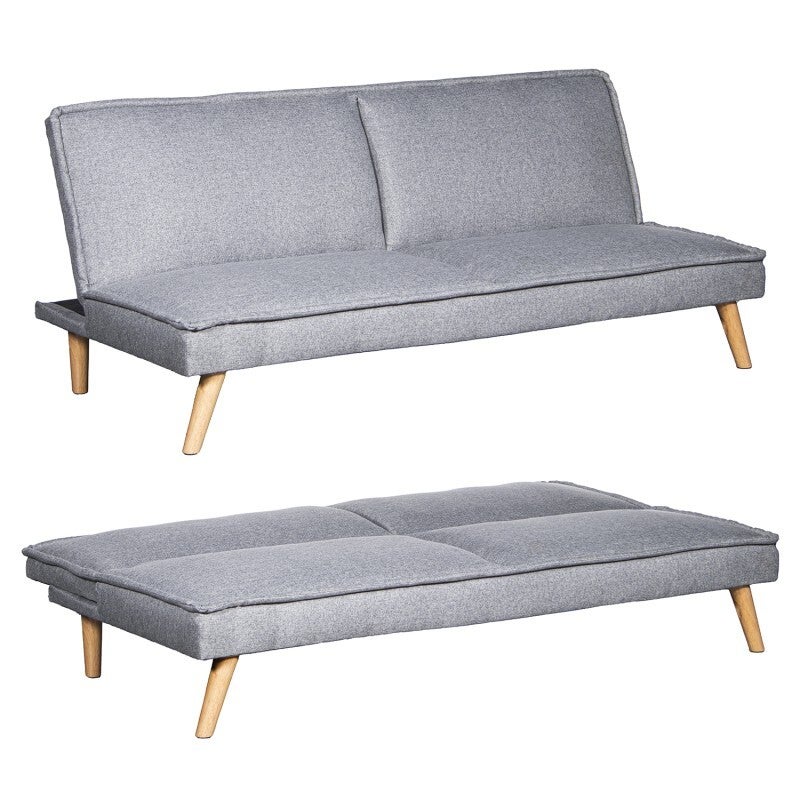 Sofá Cama 3 Plazas Poliéster Gris C/patas Madera, Sin Brazos 180x84x72cm Cama:178x102x9cm