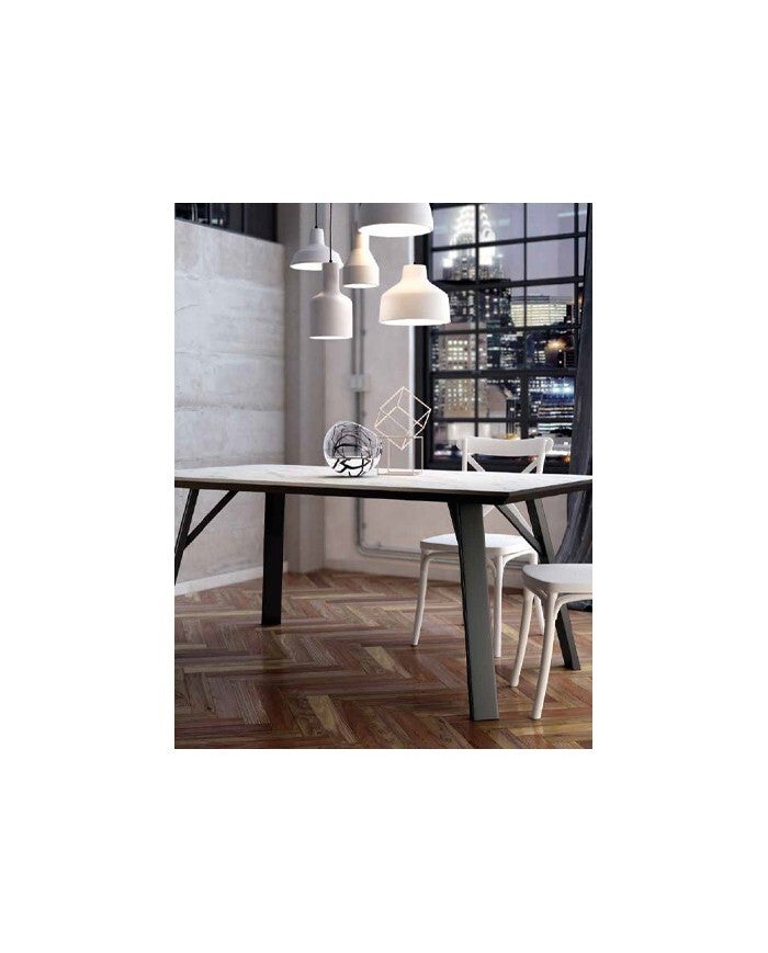 Mesa de comedor rectangular de 160x90x76cm con patas de madera y sobre biselado con 48mm de espesor, modelo Baltic rectángular
