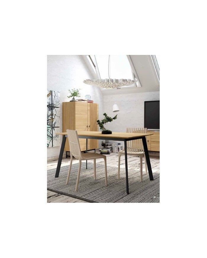 Mesa de comedor rectangular de 160cm con patas metálicas negras en Nattex
