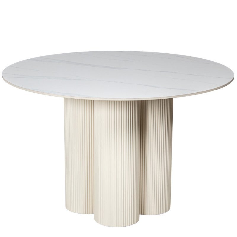 Mesa Comedor Cerámica C/base Madera Dm Beige +95083 Ø120x76cm Grosor Tab:11mm