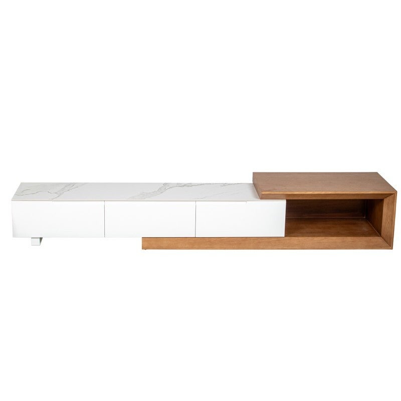 Mesa Tv Madera Roble/blanco C/superficie Ceramica +3 Cajones (166-226)x45x36cm