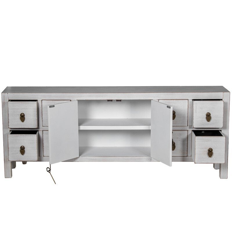 Mesa Tv C/8 Cajones Y 2 Puertas Madera Blanca Decapé 130x24x50cm Dm+paulownia