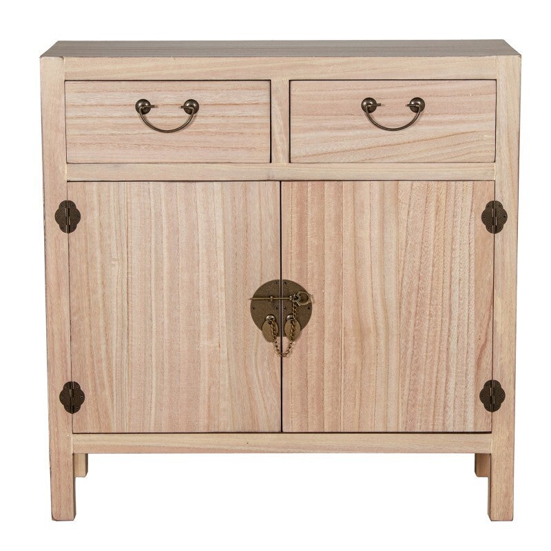 Mesa Entrada C/2 Cajones Y 2 Puertas Madera Natural 80x30x81cm Dm+paulownia