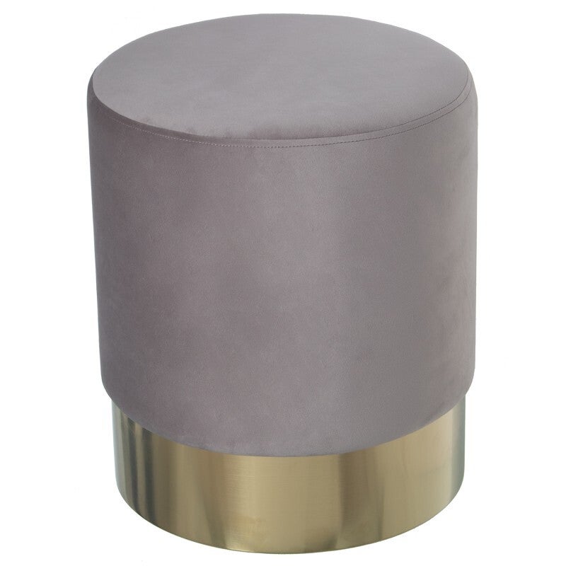 Puf Terciopelo Gris Claro C/banda Acero Dorado:10cm Ø35x42cm, Poliéster/dm+pino