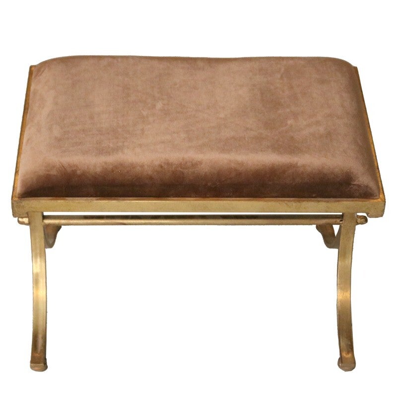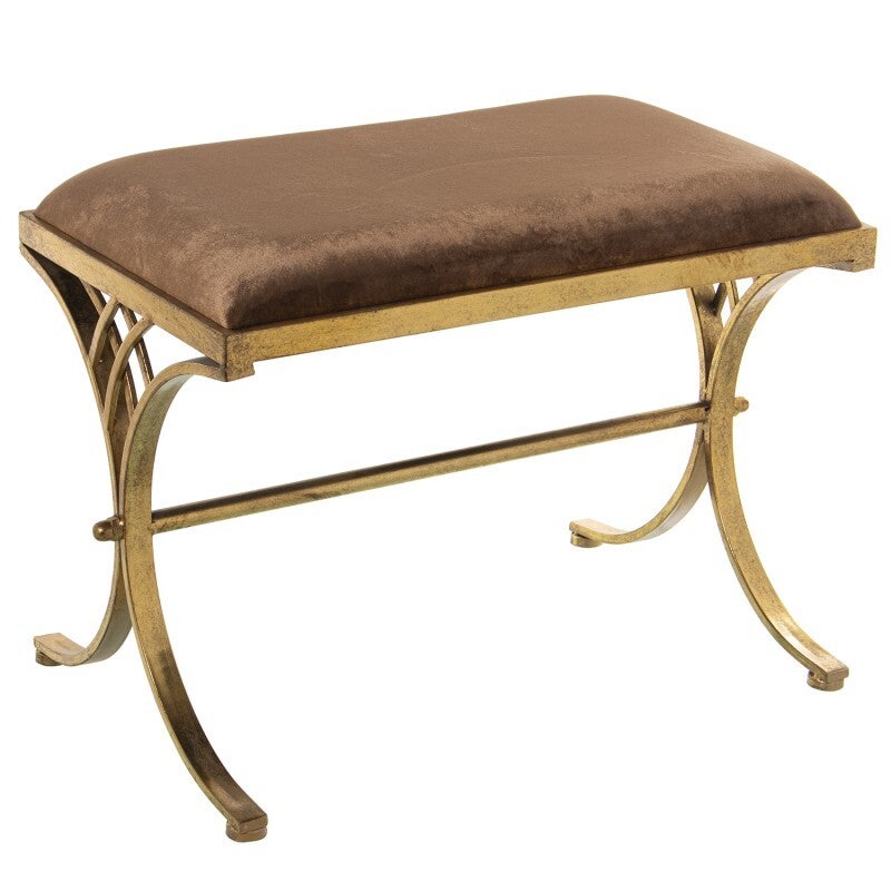 Banqueta Metal Dorado Terciopelo Marrón 60x37x46cm, Alt.patas:39cm