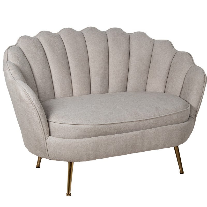 Sofa 2 Plazas Madera Tela Beige Patas Metal Doradas 129x87x76cm Alt. Asiento:46cm