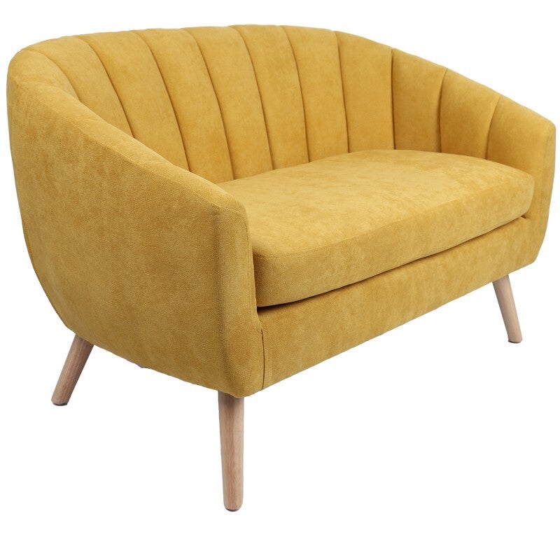 Sofá 2 Plazas Terciopelo Mostaza Patas Madera 127x73x76cm Alt.asiento:48cm