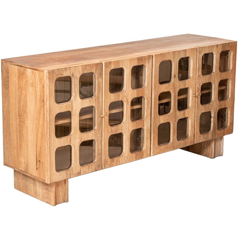 Aparador Madera Mango Y Cristal 4 Puertas 152x42x75cm