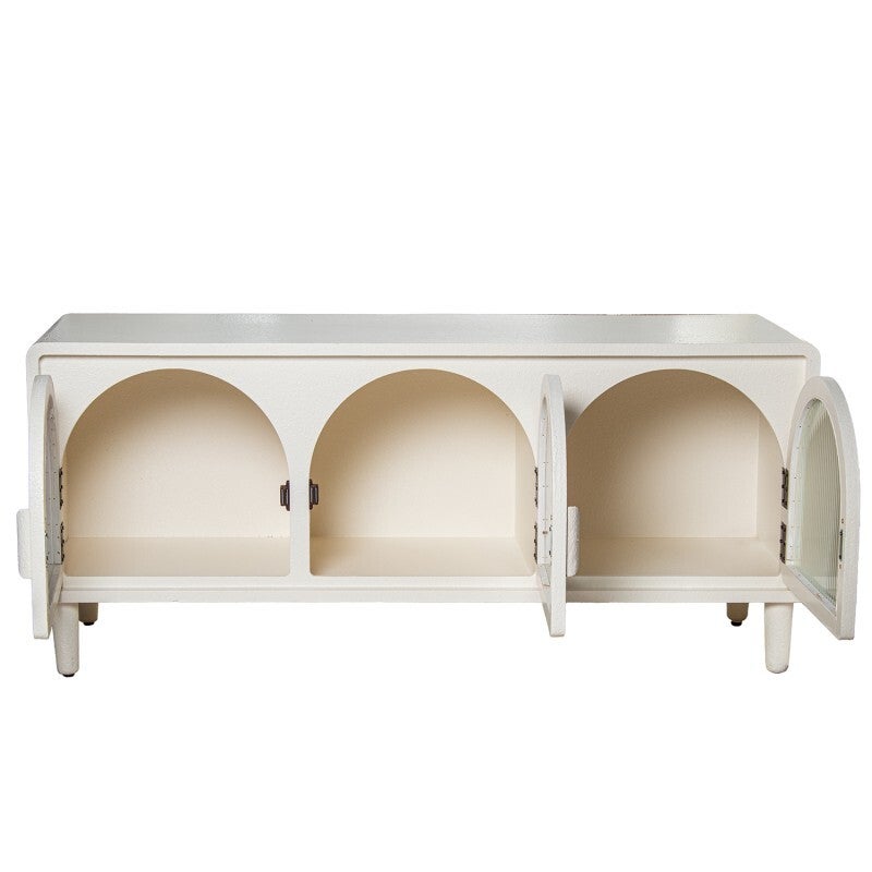 Aparador Madera Blanco C/3 Puertas De Cristal 120x42x53cm, Madera Dm+crista
