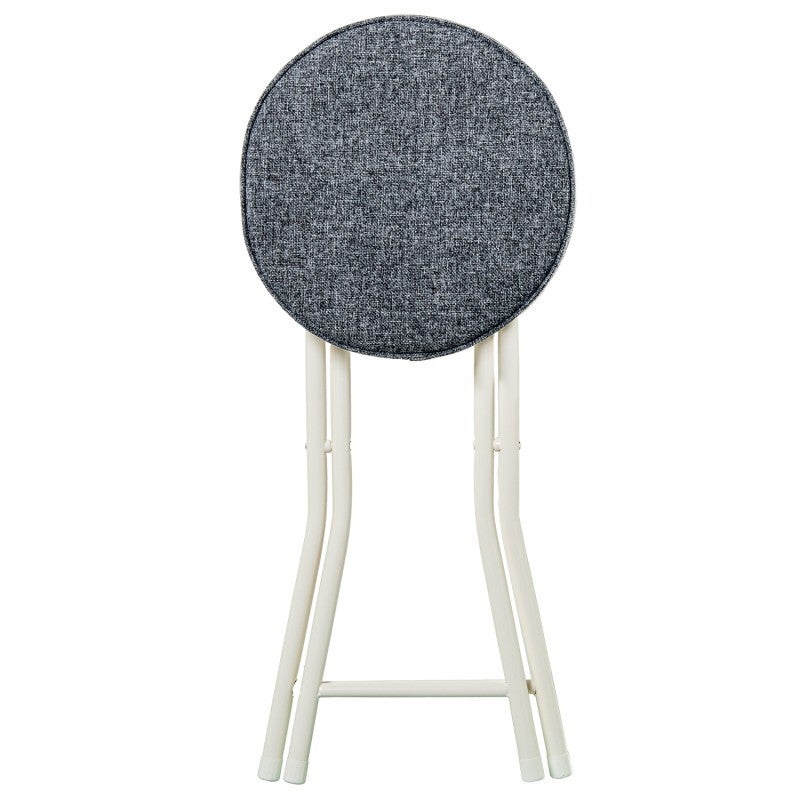 Taburete Plegable Metal Blanco Tela Gris Ø30x49cm
