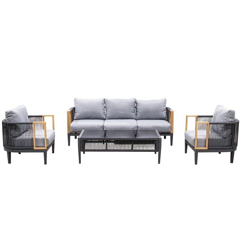 Set Sofa 3p+2 Sillones+mesa Centro Poliester/ Aluminio 74x74x66/198x74x66/128x60x41