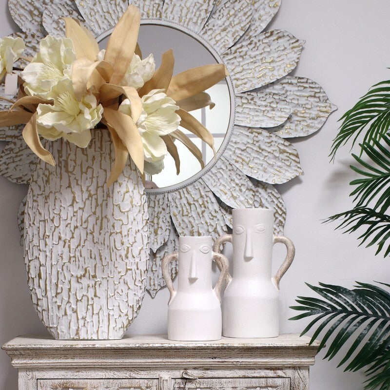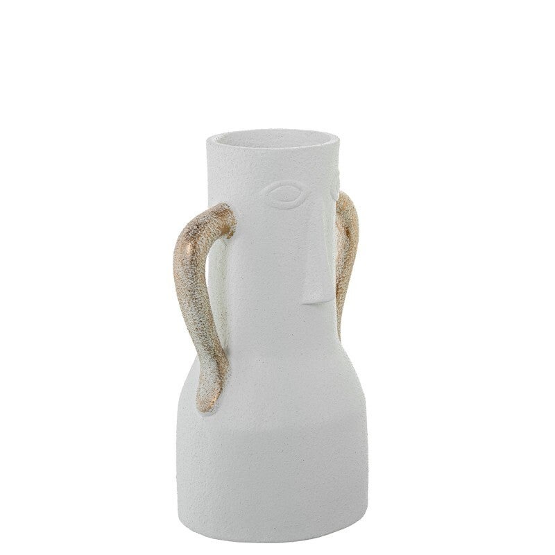 Jarrón Cerámica 30cm Blanco Rostro C/asas Doradas 19x15x30cm