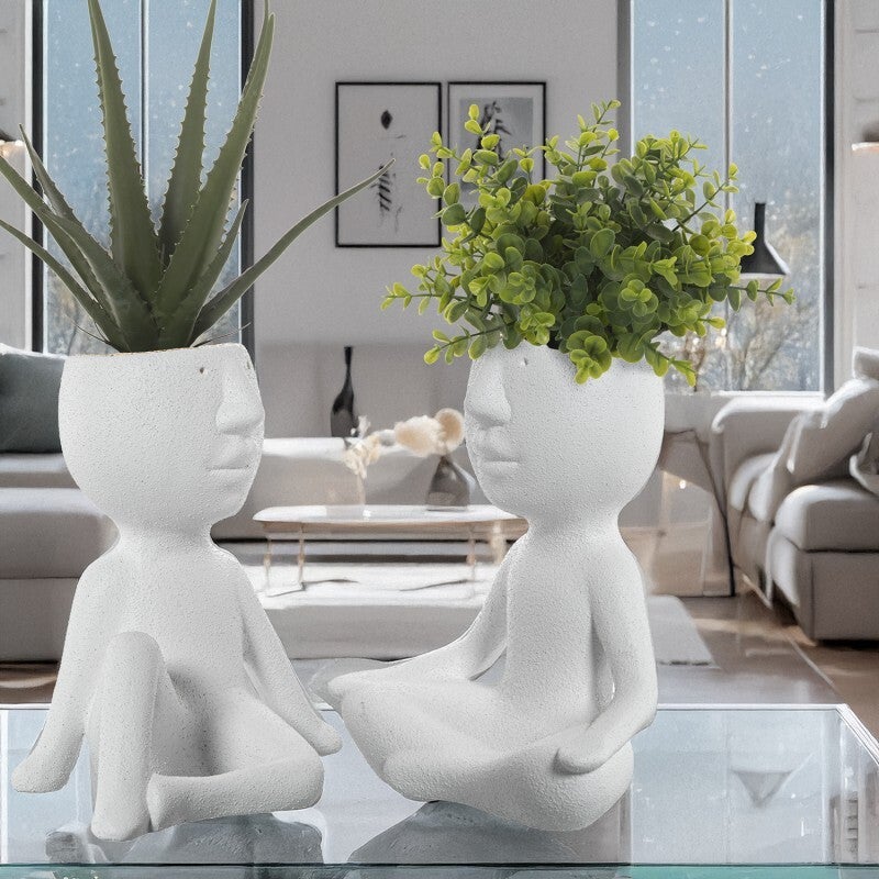 Jarrón Figura Yoga Cerámica Blanco Arena/dorado 23x13x27,5cm