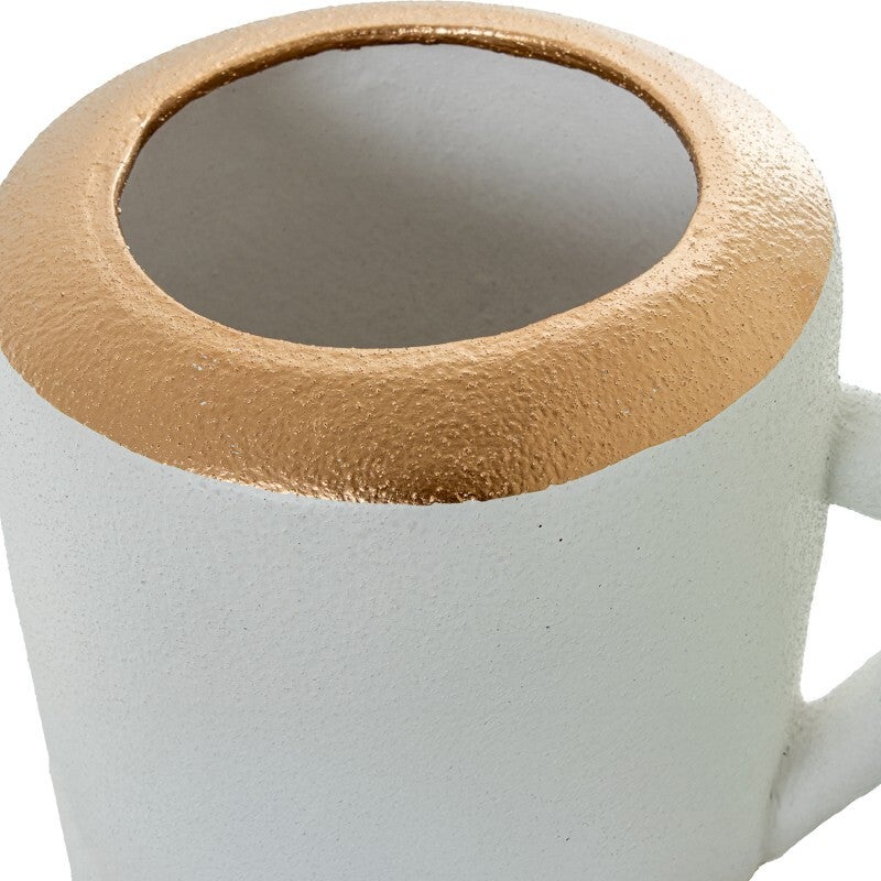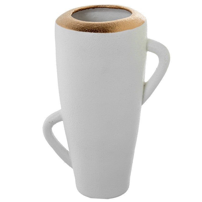 Jarrón Cerámica Blanco C/asas Doradas Filo Dorado 27x20x45cm