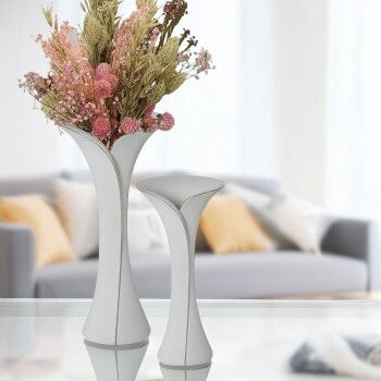 Jarron Ceramica 53cm Blanco/oro Acabado Arena 27x53cm