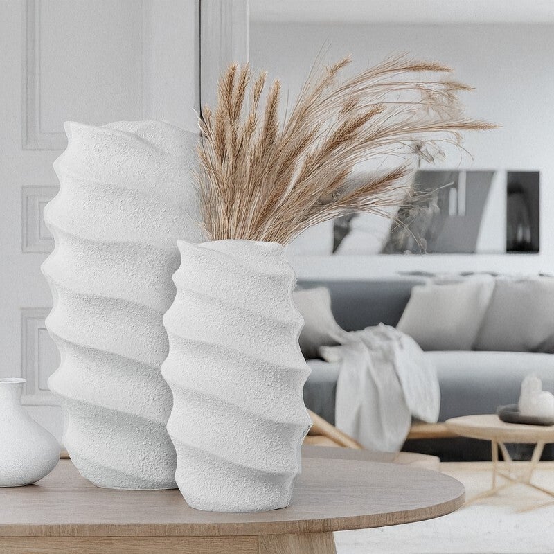 Jarrón Cerámica 40cm Ondulado Blanco Mate 22x15x40cm 81,78€