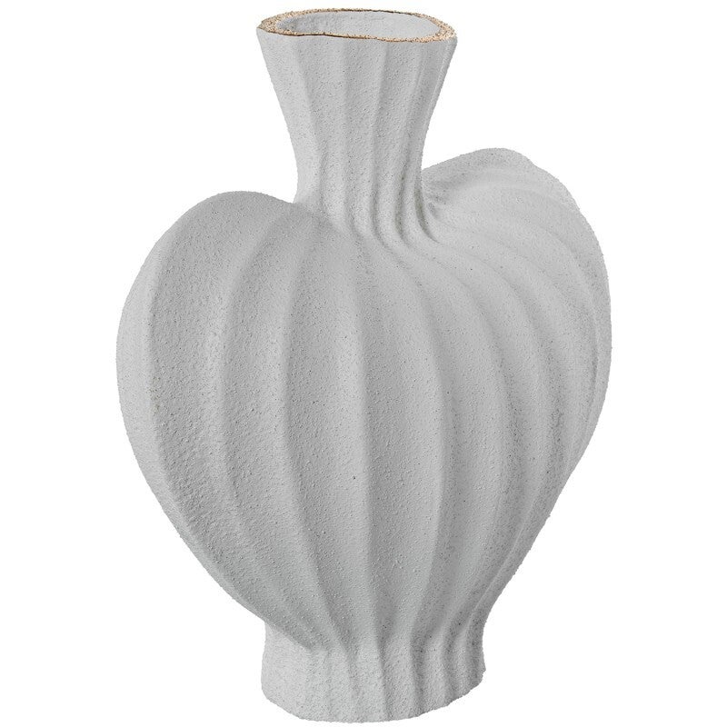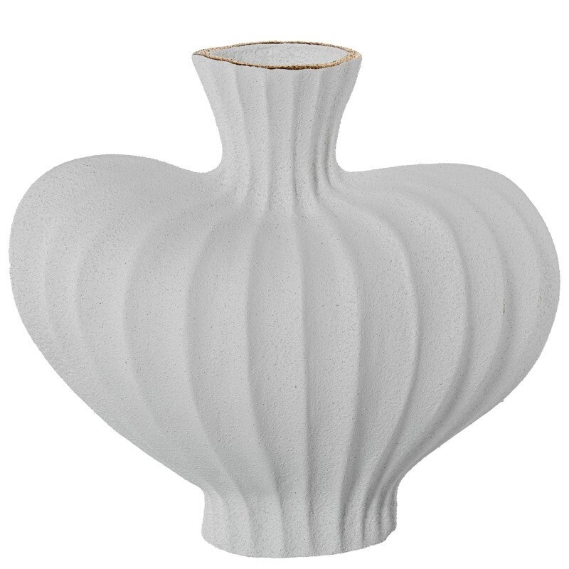 Jarron Ceramica 31cm Ondulado Blanco/oro Acabado Arena 34x19x31cm
