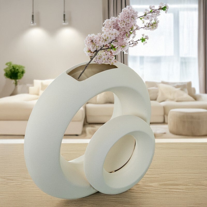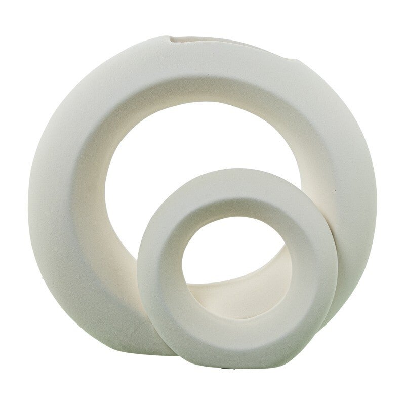 Jarron Doble Aro Ceramica 23cm Crema Rugosa 26x12x33cm